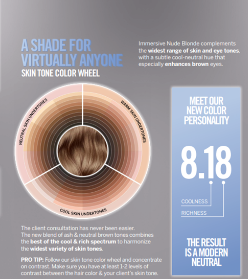 Balayage and client consultations have never been easier, thanks to our Hair Color of the Year 2025 – 8.18 Immersive Nude Blonde. This innovative blend of ash and neutral brown tones combines the best of cool and rich hues, creating a versatile color that complements a wide range of skin tones and styles.
