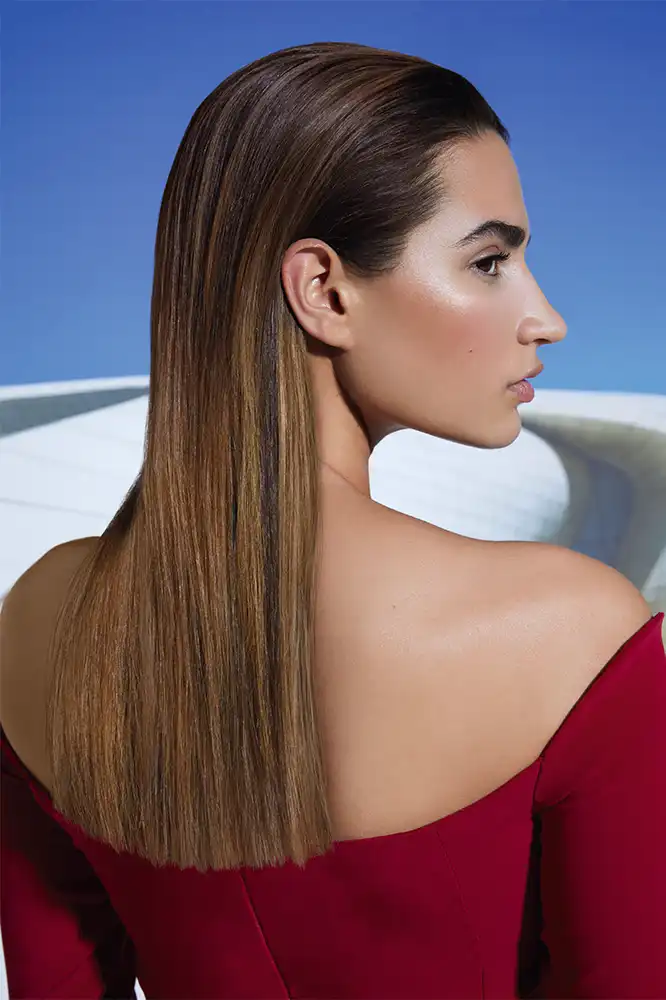For finer, straighter hair, use the airtouch balayage technique to create strategically placed lighter areas. Iluminate and volumize the hair with the new Color Excel Gloss by Revlonissimo™ Bronzite shade. The result is natural-looking, illuminated hair that is highly marketable. And the best part is that it’s low maintenance!