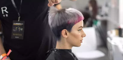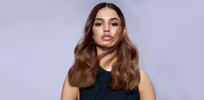 • A woman’s hair dyed with Revlonissimo Color Sublime™ ammonia free, vegan permanent hair color