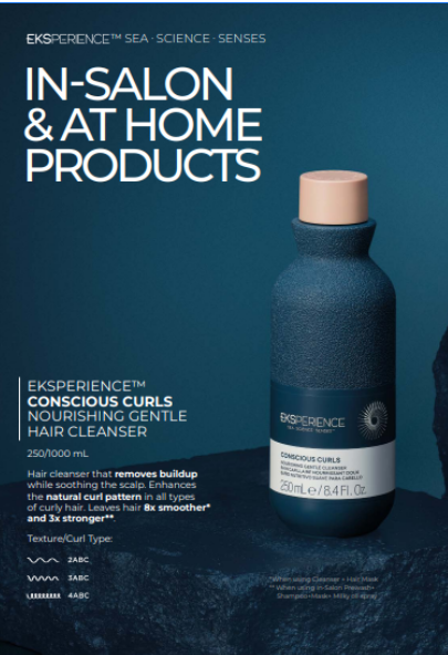 Zum ersten Mal bietet Eksperience™ Conscious Curls individuelle Kopfhaut- und Haarstruktur-Rituale im Salon an, die die natürliche Schönheit von Locken unterstreichen. Unsere exklusive Marine Curly Method™ verbindet Meereswissenschaft mit Nachhaltigkeit und liefert leistungsstarke, saubere und vegane Formeln, die auf die einzigartigen Bedürfnisse von lockigem Haar zugeschnitten sind. Diese wissenschaftlich fundierte Haarpflegeserie pflegt und revitalisiert Locken und fördert gleichzeitig eine gesunde Kopfhaut.
