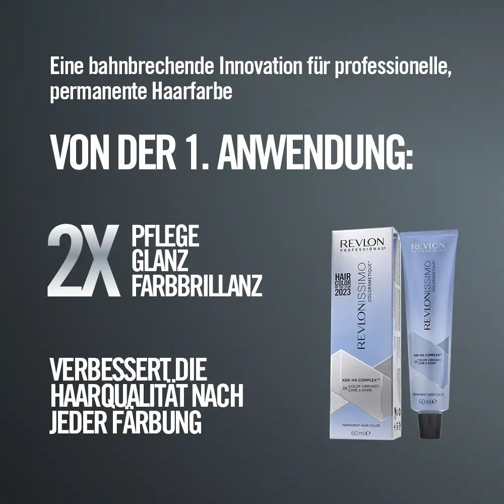 Diese atemberaubende neue permanente Farbe ist Teil von Revlonissimo Colorsmetique™, einer permanenten Farbserie, in der sich Wissenschaft und Beauty vereinen. Sie wurde mit unserer INNOVATIVEN TECHNOLOGIE, dem KER-HA Complex™ formuliert. Dieser ultimative Farb- und Pflegekomplex stärkt, versiegelt und schützt die Haarstruktur von innen und garantiert eine präzise Farbanlagerung. Für ein sichtbar sensationelles Farbergebnis, farbecht und langanhaltend.