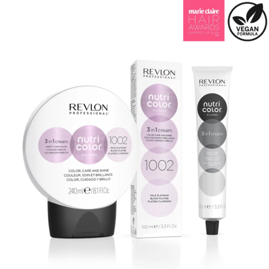 Aconseja a los clientes que usen champús morados o azules para neutralizar los tonos amarillentos no deseados y mantener su color fresco. Ninguna rutina de decoloración está completa sin productos con base morada. Anima a los clientes a usar champús morados o azules semanalmente para refrescar su tono y neutralizar los matices amarillos. Para una explicación completa sobre cómo funciona el champú morado, consulta ¿Qué hace el Champú Morado? Para un extra de cuidado, recomienda el uso de Nutri Color™ Filters, que ofrecen una mascarilla integrada para un color vibrante y duradero.