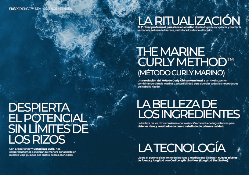 Las soluciones profesionales son esenciales para abordar estos desafíos y promover la salud a largo plazo de los rizos. Productos de calidad de salón como Eksperience™ Conscious Curls y técnicas como nuestro exclusivo Marine Curly Method™ (una evolución del método convencional Curly Girl Method), combinan la ciencia marina y la sostenibilidad para responder a las necesidades del cabello rizado.