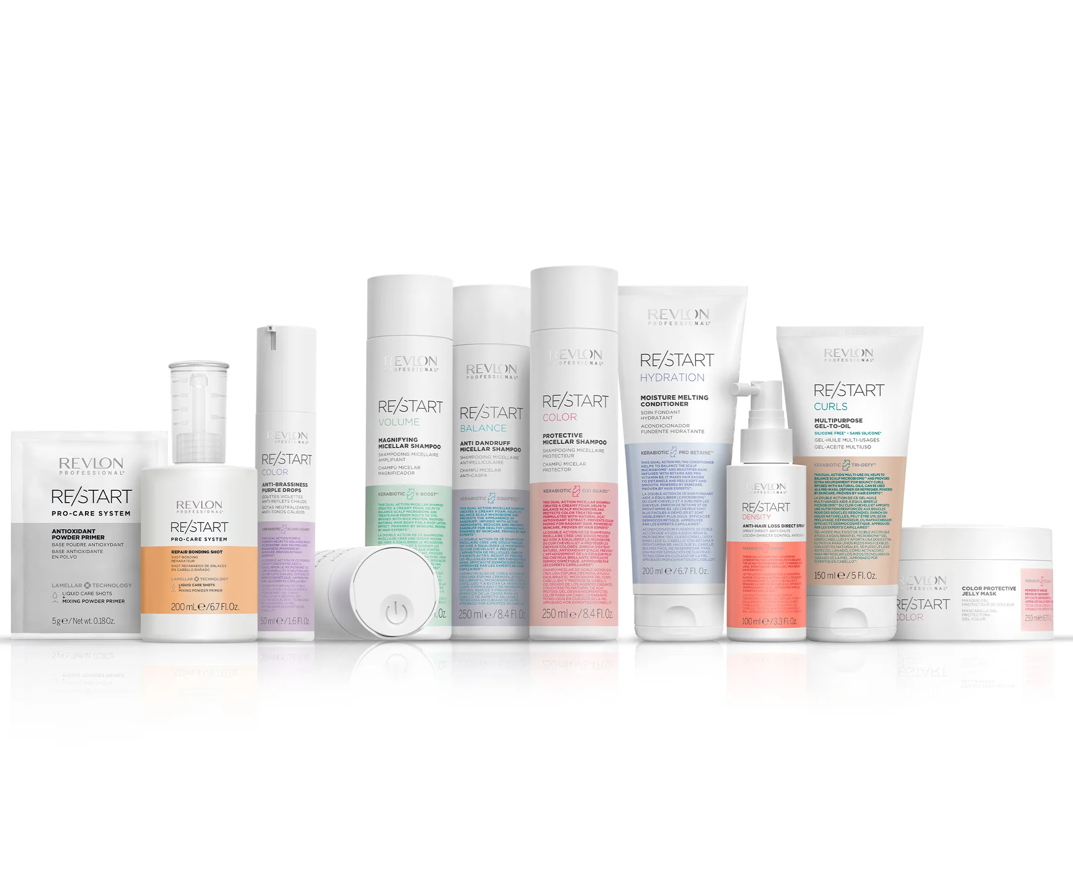 Revlon Professional® hace posible la intervención capilar de precisión. Nuestras fórmulas Restart Pro-Care System actúan como un GPS y aportan ingredientes altamente concentrados justo donde el cabello los necesita. Cuenta con Tecnología Lamelar inspirada en el cuidado de la piel que forma una red de capas organizadas llamadas laminares para estabilizar y maximizar el rendimiento de los productos para el cuidado del cabello.