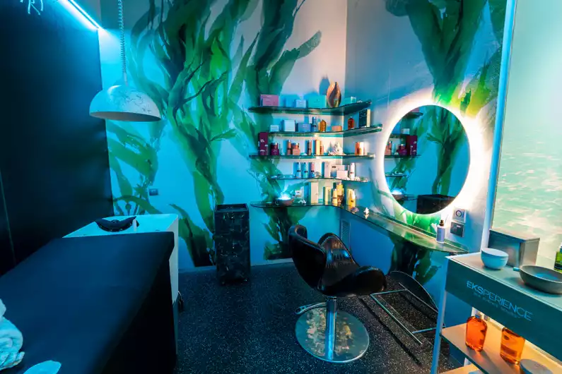 Felicitas Ordás, directora del salón ubicado en Mataró (Barcelona), ha diseñado con un equipo de expertos un exclusivo espacio llamado Hair Spa Eksperience by Revlon Professional, en el que la talasoterapia, la antigua ciencia del mar, es la base de los tratamientos que devuelven la belleza y el equilibrio al cabello y el cuero cabelludo. Para ello ha acondicionado el salón, creando una verdadera atmósfera marina que invita a una inmersión profunda de bienestar.