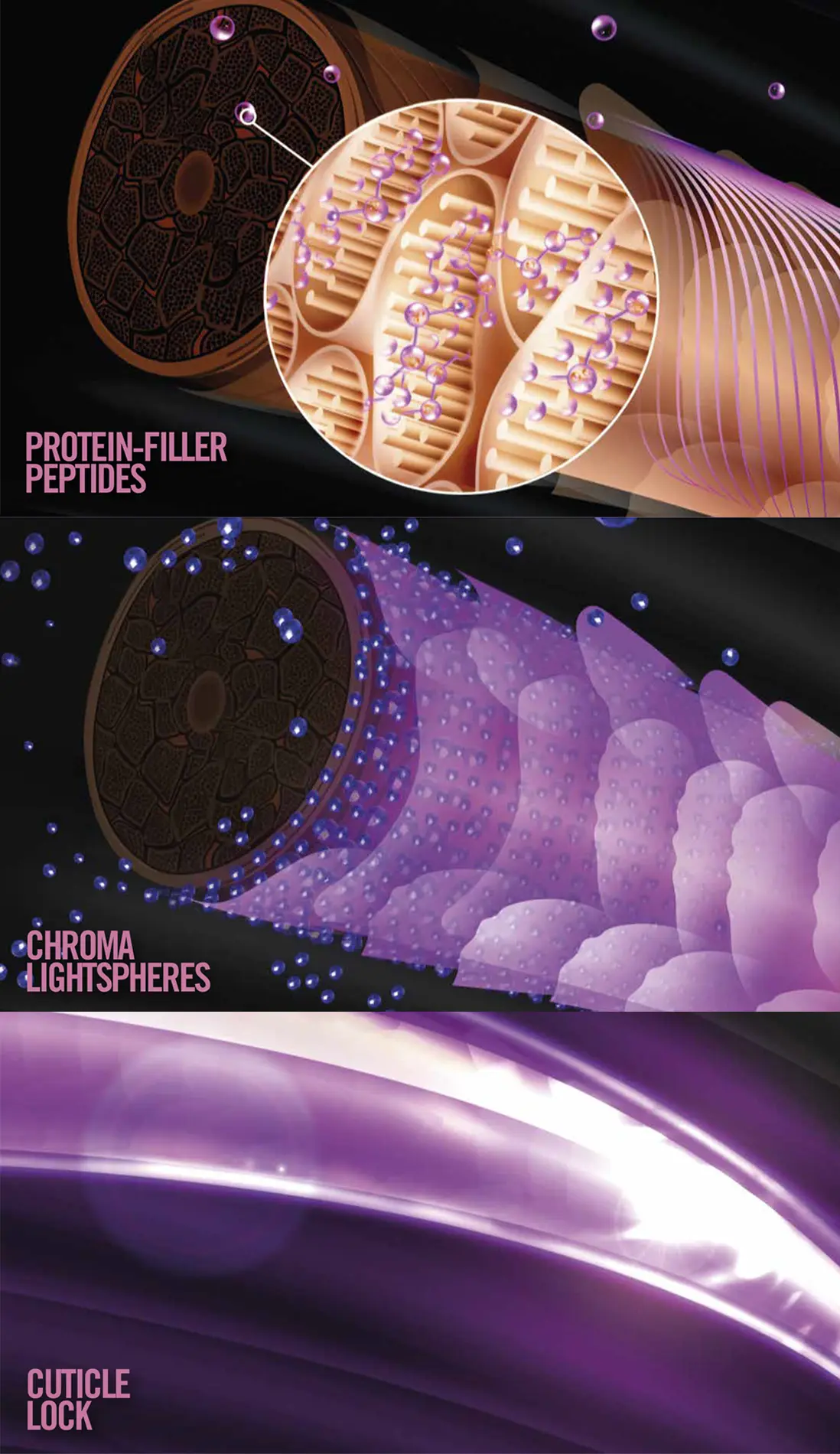 - DEPOSITAN: CHROMA LIGHTSPHERES – Pigmentos altamente reflectantes 1.000 veces más pequeños que la fibra capilar para una difusión óptima del pigmento.