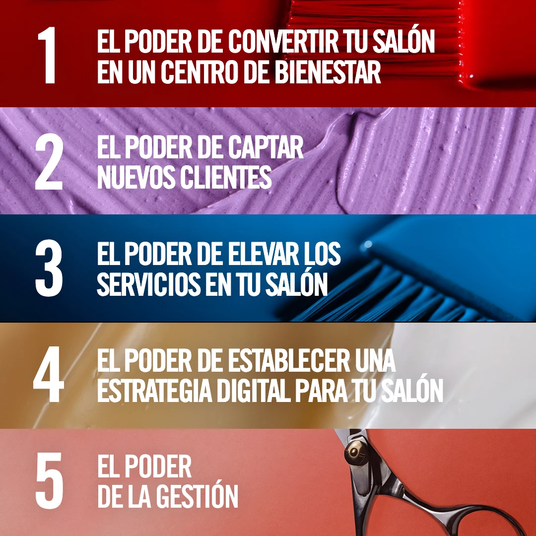 Revlon Professional® ha escuchado e identificado la necesidad de asociarse con nuestra comunidad de profesionales. Hemos trabajado con nuestros expertos y embajadores de la industria para desarrollar 5 pasos para dar forma a la marca de tu salón. Estos 5 pasos fundamentales empoderarán a los peluqueros para que el proceso de este cambio sea más rápido y exitoso. Ha llegado el momento de asociarse más allá de los productos, juntos podemos liderar el cambio.