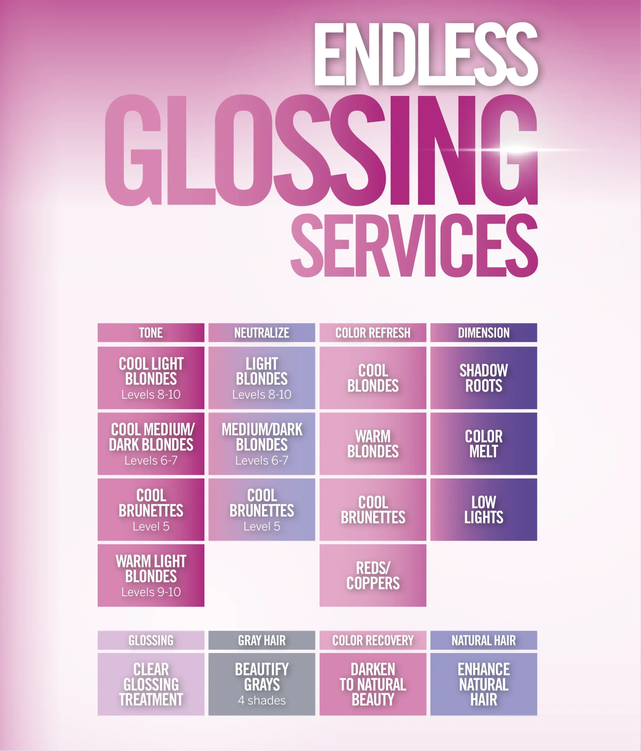 - Color Excel Gloss™ utilise une technologie acide, ce qui en fait l’option idéale pour celles et ceux qui recherchent des services de coloration sans éclaircissement et sans compromis. Il est parfait pour les bases pré-éclaircies ou déjà colorées qui nécessitent une récupération des dommages.