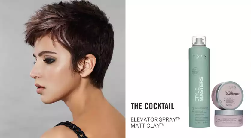 La coiffure pixie est la préférée de la saison pour celles qui recherchent une coiffure courte et moderne. La clé pour un superbe look pixie est d’ajouter de la texture et du volume. Notre combo cocktail recommandé pour réaliser ce style est notre Elevator Spray™ et Matt Clay™, découvrez comment le recréer étape par étape :