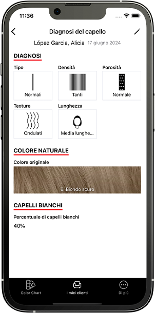 Diagnostica e profila i tuoi clienti: offri un’esperienza personalizzata per i clienti del tuo salone. Diagnostica i loro capelli, salva i loro profili e offri soluzioni su misura per soddisfare le loro esigenze in termini di capelli.